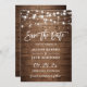 Rustic Country Wood Twinkle Lights Mariage Photo Enregistrer la carte Date. Pour plus de personnalisation, cliquez sur le lien "customiser plus" et utilisez notre outil de conception pour modifier ce modèle.