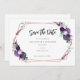 Elégant violet fleurs rose or cadre géométrique mariage floral enregistrer la carte de date que vous pouvez facilement customiser avec vos détails en cliquant sur le bouton "Personnaliser". Caractéristiques typographie populaire moderne avec texte de script en noir sur arrière - plan blanc. CONSEIL : Produits correspondants disponibles ci-dessous pour votre commodité