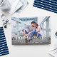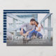 Annoncez votre mariage dans le style avec ces modernes enregistrer les cartes d'annonce de date qui mettent en vedette votre photo de fiançailles avec un joli script superlay design qui est élégant mais jouant. Inclut un texte personnalisé moderne qui peut être personnalisé sur le devant avec tous les détails importants, ainsi qu'un motif de coordination de bandes horizontales dessinées à la main sur le dos avec une couleur arrière - plan marine profonde / bleu nuit (peut être modifié). Notez que le filtre dégradé de photo foncé peut être supprimé.