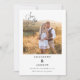 Une mise en page mariage chic et minimaliste avec un gros titre de script audacieux et d'élégants accents serif. Les noms personnalisés et les détails de date sont encadrés en noir et blanc intemporel, parfait pour les couples modernes qui aiment l'esthétique propre. Un énoncé qui allie luxe et simplicité.