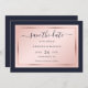 Elégant mariage bleu marine, bleu et or rose enregistrer la carte de date avec une police de script moderne. Personnalisez facilement cette carte en ligne. Objets assortis disponibles pour compléter ce mariage minimaliste mais élégant enregistrer la carte de date.
