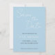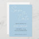 Cartes de faire-part de mariage de style simple qui présentent un script stylisé noir sur un fond de couleur bleu clair tendance. Modifiez et remplacez les noms, la date et le lieu par les vôtres. Sélectionnez la taille de votre invitation et le style de papier.