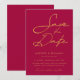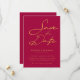 Vous cherchez des invitations de mariage typographiques modernes ? Présentant notre magnifique Chic Rose Magenta Or Typographie moderne Mariage Sauvez la Date! Ce rose sauve la date exsude la sophistication intemporelle avec son élégante typographie moderne et design élégant et minimaliste. C'est le choix idéal pour les couples à la recherche d'invitations de mariage sobres mais élégantes qui captent l'essence d'un élégant thème mariage moderne. Beau effet or numérique sur le texte "Enregistrer la date".