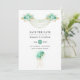 Roses d'aquarelle verte à la menthe avec parties scintillant d'or feuillage tropical et des lumières à cordes mariage enregistrer la date personnalisable à votre événement spécifique.