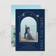 Mystical Blue Gold Sun Moon Star Space Wedding Save The Dates présente un cadre de soleil, de lune et d'étoiles en or sur un arrière - plan bleu marine foncé. A l'intérieur est votre photo préférée et votre personnalisation enregistrer les informations de date. Ajoutez une photo supplémentaire au verso. Personnalisez en modifiant le texte dans les zones de texte. Conçu pour vous par ©2022 Evco Studio www.zazzle.com/store/evcostudio