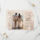Un design moderne et élégant présente une feuille de palme brossée au vent et à l'or soufflé contre un arrière - plan de couleur pâle et ensoleillé chaleureux. Personnalisez facilement vos informations personnelles de choix, y compris votre photo préférée avec votre monogramme au dos. Le mariage d'été boho parfait pour tous les thèmes chauds du bord de mer.