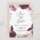 Ce mariage d'herbe boho pampas sauf la carte faire-part date est parfait pour un mariage d'été. L'aquarelle fleurie présente des fleurs bohèmes bordeaux et roses rousses avec des sprigs de pampa neutres et des feuilles de palmiers séchés dorés.