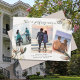 Thème du Sud, mariage magnolia enregistrer les cartes de date avec trois modèles photo. Un design moderne dans les tons blanc et rose-beige. Chacun des trois modèles photo est encadré et ont un aspect en couches avec la photo centrale en évidence. Le texte en haut, dans un script d'écriture moderne, est "Nous nous marions !", ou changez-le pour Enregistrer notre Date, ou d'autres termes comme vous voulez. De belles fleurs de magnolia blanc illustrées ornent les coins. Inclure la date de célébration et l'emplacement au bas. Cette conception est également disponible pour partager numériquement en choisissant l'option de téléchargement instantané. La sélection de la carte imprimée est affichée sur un papier mis à niveau. D'autres fleurs décorent l'inverse.