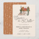 Invitation de mariage personnalisée boho désert avec une illustration moderne de paysage désertique avec un coucher de soleil et un cactus, police de caractères moderne pour la date de mariage et modèle de texte entièrement personnalisable pour les noms des mariés et les informations de mariage. Joli motif désertique assorti au dos sur un fond de terre cuite brun chaud.