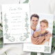 Élevez votre jour spécial avec ce design floral classique élégant de couleur sauge, mettant en vedette des volutes baroques avec des colonnes de roses toile et du feuillage. Comprend des champs de texte, un code QR et un modèle de photo.