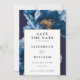 Save The Date Mariage élégant avec des fleurs bleues et or