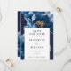 Ce faire-part de mariage élégant avec des fleurs bleues et or peut être personnalisé avec vos informations dans une typographie moderne. Conçu par Thisisnotme©