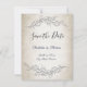 Un mariage élégant Enregistrer la carte de date conçue avec des textes en feuille doux et en noir. Le texte avant comprend : Les prénoms du couple, la date et l'emplacement du Mariage. Le texte inverse comprend : Invitation formelle à suivre. Pour personnaliser, il suffit d'insérer vos détails dans notre modèle, en remplaçant l'échantillon.