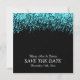 Elégant & Glam mariage "Save The Date" design avec classeFalling Stars effet Turquoise avec ciel nocturne plein d'étoiles sur l'arrière - plan noir, et les noms de mariée et de chambre personnalisés, adresse & texte de date. Impressionnez votre famille et vos amis avec ce design élégant et moderne. Entièrement personnalisable ! Facile à utiliser et facile à personnaliser. Commandez aujourd'hui !