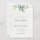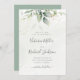 Belle carte de rendez-vous avec aquarelle d'eucalyptus et feuilles d'or avec écriture manuscrite moderne.