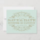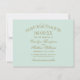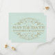 Fraîche et raffinée, cette carte de rappel de mariage sans photo présente un cadre orné de doré élaboré sur un fond doux de couleur bleu-vert menthe. Le filigrane doré chaud sur la menthe fraîche crée une palette magnifiquement équilibrée adaptée aux mariages de printemps, de jardin ou de destination. Disponible en petite carte idéale pour être envoyée avec une suite d'invitation complète. Tout le texte est entièrement personnalisable.
