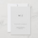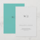 Partagez l'excitation de votre mariage imminent avec notre carte "Save the Date" minimaliste, conçue pour les couples qui préfèrent la simplicité. Cette carte élégante présente un fond gris-blanc avec les initiales du couple bien en évidence au centre de la moitié supérieure, utilisant un espace négatif généreux pour un look épuré. Les noms et les détails importants du couple sont soigneusement placés sur la moitié inférieure. Le verso de la carte présente un magnifique fond sarcelle avec les initiales du couple imprimées avec goût au centre. Ce design correspond parfaitement à notre suite de faire-part de mariage, offrant un aperçu cohérent et élégant de votre jour de mariage.