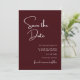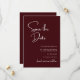 Élégant et moderne, le carton "Save the Date" de mariage bordeaux est conçu pour annoncer votre célébration avec style, chaleur et confiance. La riche couleur bordeaux crée une première impression romantique et sophistiquée, tandis que la mise en page moderne et épurée garde le design intemporel et facile à lire. La typographie soigneusement agencée met en valeur vos noms et la date du mariage, garantissant à vos invités de se souvenir du moment qui compte le plus. Cette carte "Save the Date" se marie parfaitement avec des thèmes de mariage classiques, formels ou contemporains, ce qui en fait un choix polyvalent pour toutes les saisons ou lieux de réception. Parfaite pour les couples qui souhaitent que leur papeterie de mariage soit raffinée tout en étant accessible, cette création donne le ton pour une célébration élégante et offre à vos invités un beau rappel de votre jour spécial à venir