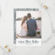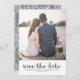 Mariage en dentelle romantique et moderne enregistrer la carte de date dans une élégante palette de couleurs bleu gris et blanc. Ajoutez simplement vos informations et votre photo préférée pour faire de cette belle conception votre propre.