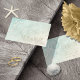 Une texture aquarelle dans les tons doux de la mer et du sable est l'arrière - plan pour les éléments marins tels que l'étoile de mer et les coquilles qui sont rehaussés de vagues de mousse de mer pour créer les pièces de cette suite mariage. La carte Save the Date de mariage présentée ici contient tous les éléments ci-dessus ainsi qu'un modèle pour ajouter facilement vos propres informations pertinentes sur l'événement. Le texte optionnel 'Save the Date', dans une police moderne ouverte, a une finition en feuille or et un effet d'ombre après-midi. Recherchez ID837 pour voir toutes les pièces de coordination dans cet ensemble.