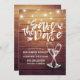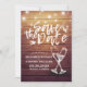 Enregistrez La Date Faire-part de mariage Card Modèles - Élégant Script, Lunettes de Champagne Vintages et lampes à cordes sur Arrière - plan de bois rustique. Un Design Parfait Pour Votre Grand Jour ! Tous Les Style De Texte, Couleurs, Tailles Peuvent Être Modifiés En Fonction De Vos Besoins.