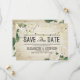 Enregistrez le Modèle de la carte Faire-part de mariage Date - Élégant Script avec Hydrangée Blanche Floral et des lumières à cordes sur Arrière - plan en bois blanc rustique. Un Design Parfait Pour Votre Grand Jour ! Tous Les Style De Texte, Couleurs, Tailles Peuvent Être Modifiés En Fonction De Vos Besoins.
