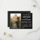 Célébrez votre fiançailles avec ces cartes à plat recto-verso personnalisées de novembre 2020 "enregistrer la date" mariage. Sur le devant, ces élégantes cartes en noir et blanc montrent votre photo, ainsi que les noms de la mariée et du marié, votre date de mariage, et un calendrier pour le mois de novembre 2020 pour rappeler à vos invités. Ils comprennent également un petit coeur d'aquarelle bordeaux et un "cercle de dates" pour encercler la date du calendrier. À l'arrière, vous trouverez de la place pour votre emplacement mariage et plus de texte, comme les mots "invitation formelle à suivre" et votre site Web. CONSEIL : Pour faire le tour d'une autre date du calendrier, après avoir rempli tous vos autres détails, sélectionnez "customiser / personnaliser davantage". Le CERCLE DATE est l'image supérieure. Sélectionnez-le et déplacez-le à votre date de mariage. Vous pouvez également le redimensionner ou réorganiser et supprimer d'autres éléments.