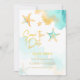 Carte de Remerciement Étoile de Mer à l'Aquarelle Bleue et Or pour Mariage Tropical