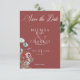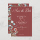 Célébrez votre nouveau départ avec la beauté botanique de l'hiver. Cette sauvegarde de la conception de la carte de date comporte un cadre décontracté de pin, eucalyptus, et baies dans les teintes sauge, vert pin, et riche rouge vintage sur un arrière - plan rouge riche. Elégant et parfait pour la saison. Créé par Simply Farmhouse Press.