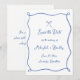 Épargnez la Date de Mariage Fantaisiste Dessin à la Main Ruban Bleu Français avec un cadre de ruban ondulé et une police de style écriture manuscrite. Ajoutez des détails supplémentaires au verso.