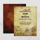 Une élégante suite de faire-part de mariage sur le thème Victorien Steampunk, avec un mélange d'éléments industriels et d'illustrations vintage d'oiseaux et de roses. Au dos se trouve un cœur composé de rouages rouillés. Les couleurs de fond en faux or antique et en marron velouté ajoutent une touche d'autrefois.