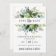 Mariage feuille succulent moderne sauvez l'invitation de la carte de date, avec feuillage verdoyant et eucalyptus frais et parties scintillant d'or pétillants, Roses Blush ©