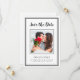 Moderne et simple, le design du cadre photo Save The Date présente votre photo de fiançailles carré préférée encadrée par un cadre de carré noir sur un arrière - plan blanc immaculé. Personnalisez et partagez vos détails de fiançailles et de mariage avec vos invités dans des lettres et des scripts noirs élégants. Le design est complété par un cadre double moderne en noir. Le dos de la carte est blanc. (Pour placer au mieux votre image, utilisez un outil de retouche photo pour centrer et recadrer AVANT de télécharger sur le site Zazzle.) Contactez invitationsuites@gmail.com ou utilisez la fonction de message avec des questions ou des requêtes couleur personnalisées.