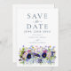 Etonnant mariage d'aquarelle peinte à la main fleurs sauvages et feuillage enregistrer l'invitation de date en bleu marine, bleu poussiéreux, bleu cornflower, bleu marine, violet, rose, jaune, bordeaux, magenta et vert. Personnalisez les initiales monographiques de mariée et de mariée au dos de l'invitation. Idéal pour un mariage unique sauf la date pour un mariage de printemps ou d'été. Élégant script de typographie moderne en bleu marine complète la charmante boho magnifique oeuvre d'art qui comprend des fleurs de cornes, pavot, cosmos, oublier les nots, marguerite, bouton billy et feuillage délicat. Mariage bohème chic enregistrer les invitations de dates parfaites pour une prairie de printemps, mariage d'été jardin. OEuvre originale de l'artiste Catherine Sweetman
