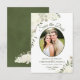 Cette belle carte de Save the Date de mariage présente un design floral bohème rustique chic avec votre photo dans un cadre ovale entouré de roses et de fleurs peintes à la main à l'aquarelle dans des nuances d'ivoire, de blanc et de crème. La typographie présente une élégante écriture sage ou vert olive. Classique, stylée et chic, cette carte est un excellent moyen de faire savoir à vos amis et à votre famille de réserver la date de votre jour spécial.