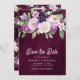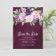 Save The Date Mariage Fleurie Pourpre Photo Sombre Prune