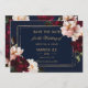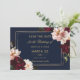 Personnalisez facilement et rapidement ce faire-part de mariage élégant. Cliquez simplement sur le bouton Modifier à l'aide des outils de conception pour modifier le texte, changer les styles de police et les couleurs de police. Avec de belles fleurs réalistes burgundy, peonies blush et anémones bleu marine sur un fond bleu marine sombre et dramatique. Articles assortis disponibles en magasin. (c) Somerset Fine Paperie