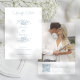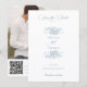 Cette conception romantique et classique présente une bordure luxuriante de roses élégantes dessinées à la ligne, de fleurs mélangées, de muguet, de feuillage et de vignes dans une couleur bleu poussiéreux intemporelle. Sont également inclus des champs de texte modifiables, un texte de calligraphie personnalisé, un modèle de photo et un code QR pratique pour l'URL de votre site Web personnalisé.
