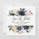 Save The Date Mariage Fleurs Aquarelle Rose & Marine