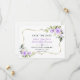 Élégant design de carte avec des fleurs de lavande aquarelle et des feuilles vertes, un cadre doré faux, un séparateur floral, sur fond blanc. Au dos, une couronne florale de lavande en forme de cœur et des initiales. Utilisez l'outil Personnaliser pour ajouter vos informations, modifier les polices, les couleurs des polices. Pour les articles assortis, veuillez visiter ma Collection de Fleurs de Lavande.