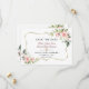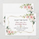 Carte élégante avec des fleurs rose blush aquarelle et des feuilles vertes, un cadre doré faux, un séparateur floral, sur fond blanc. Au dos bouquet de fleurs rose blush. Utilisez l'outil Personnaliser pour ajouter vos informations, changer les polices, les couleurs des polices. Pour les articles assortis, veuillez visiter ma Collection de Fleurs Crème Blush.
