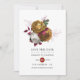 Invitation de mariage vintage burgundy, fleurs blanches et or avec faux strass et un faux damas doré au verso personnalisable selon les spécificités de votre événement.