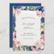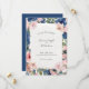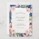 Invitation vos invités à une mariage simple, classique, boho chic avec ce papier déchiqueté et aquarelle florale avec des vibes romantiques. Les fleurs sont rose vif et bleu foncé avec de la verdure.