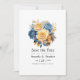 Mariage floral bleu et or sauvegardez la date. Idéal pour un thème ou un mariage de jardin.