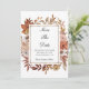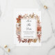 Un beau design floral d'automne en terracotta, rouille et fleurs orange brûlé. Ajoutez vos noms, date et lieu de mariage, tous les champs peuvent être modifiés.