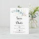Cette carte de sauvegarde de mariage à l'eucalyptus doré et à la calligraphie florale rustique est parfaite pour un mariage simple. Ce design artistique présente des éléments floraux dorés dessinés à la main et un feuillage vert d'eucalyptus à l'aquarelle, inspirant une beauté naturelle.