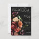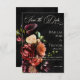 Entrez dans un royaume d'élégance exquise avec notre mariage floral foncé et moody enregistrer la carte de date. Conçu pour captiver les sens, ce design se targue d'un arrière - plan noir frappant, agrémenté d'un éclat époustouflant de fleurs automnales dans des tons bordeaux, orange brûlé, crème, et de touches d'or luxueux, complétés par un feuillage vert olive luxuriant. Le texte crémeux ajoute une touche de romantisme à l'allure générale. Découvrez l'opulence de la saison et donnez le ton de votre journée spéciale avec ce design étonnant, qui laissera une impression durable à vos invités. Créé par Simply Farmhouse Press.
