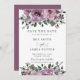 Cette élégante carte de sauvegarde de la date présente un bouquet de feuillage floral et de verdure mauve aquarelle rustique violet. Idéal pour un mariage d'hiver, d'automne et de printemps. Personnalisez-le avec vos détails facilement et rapidement, il suffit d'appuyer sur le bouton de personnalisation pour réorganiser et formater le style et l'emplacement du texte. (c) The Happy Cat Studio