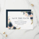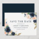 Save The Date Mariage Floral Élégant Moderne Bleu Marine Rose