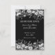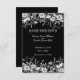 Une bordure florale noire et blanche entoure le haut et le bas de cette invitation.